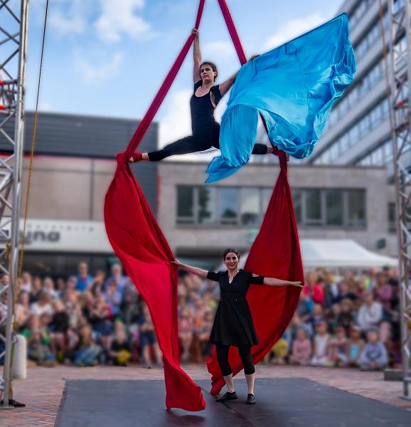 „Crystal, Silk and Air“ ist die neue Performance der Feuerfeen mit Vertikaltuch, Kontaktjonglage, Tanzakrobatik und jeder Menge Seide! Wie ein Wirbelsturm erfassen sich Glas und Seide, ergänzen sich Kleid und Tuch, verweben sich Bewegung und Körper – Luft und Erde in einem aufregenden Dialog.